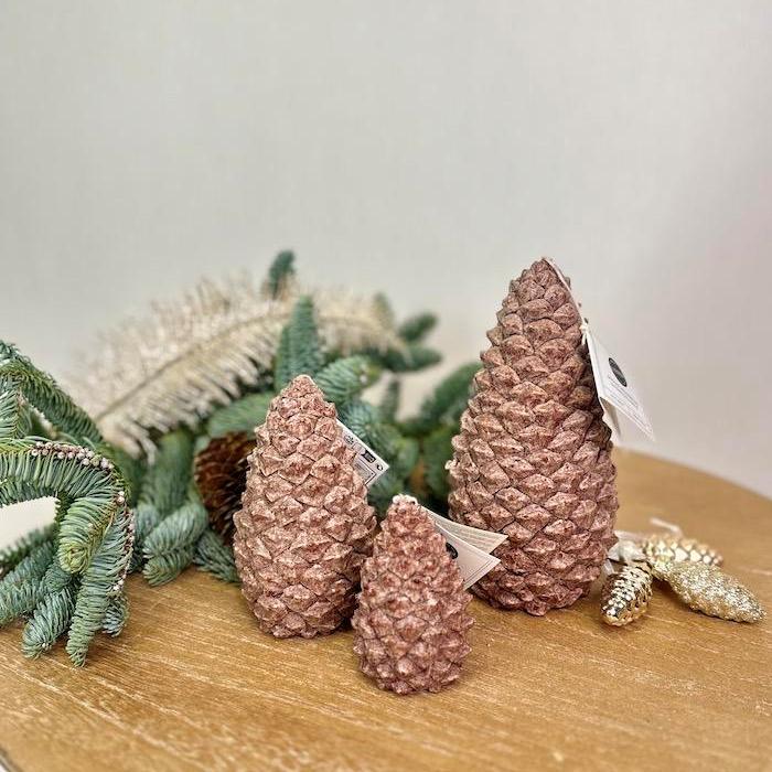 - Свечи оригинальных форм (шишки, яблоки, фигурные элементы) Настоящие арт-объекты. Они украшают интерьер даже без огня, а при зажигании создают особую атмосферу. Шишки – символ зимы и Нового года, яблоки – уют осени, а необычные формы добавляют игривости и индивидуальности.