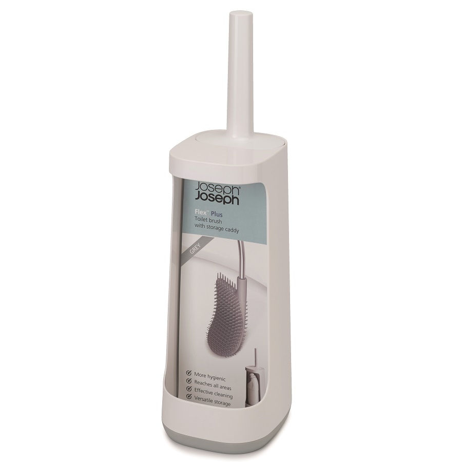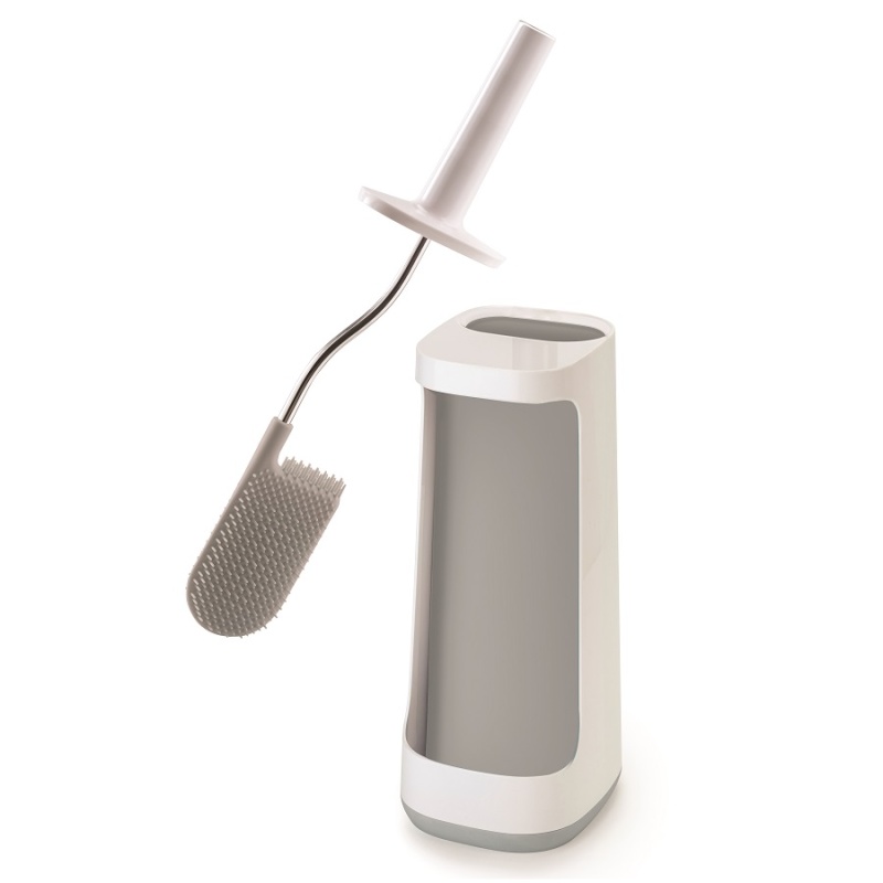 Гибкая полимерная щетка эффективно очищает все труднодоступные места и не впитывает воду. Особенность ёршика – практичная конструкция с защитой от засорения. Широкое расстояние между щетинками не дает грязи скапливаться. После уборки ёршик не надо стряхивать, пытаясь очистить и высушить, благодаря уникальному дизайну Flex™, вода быстро стекает со щетки и не оставляет лишних капель. Удобная и компактная подставка оснащена специальным многофункциональным отсеком, который можно использовать для хранения аэрозолей, моющих средств и туалетной бумаги. Таким образом, они будут спрятаны от постороннего глаза, но останутся под рукой. При уборке с отбеливающим средством стоит избегать его попадания на ручку из нержавеющей стали.