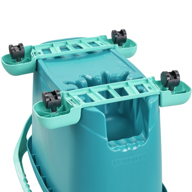 Ведро имеет встроенную функцию отжима швабры, которая позволяет легко дозировать увлажнение насадки до нужного уровня.