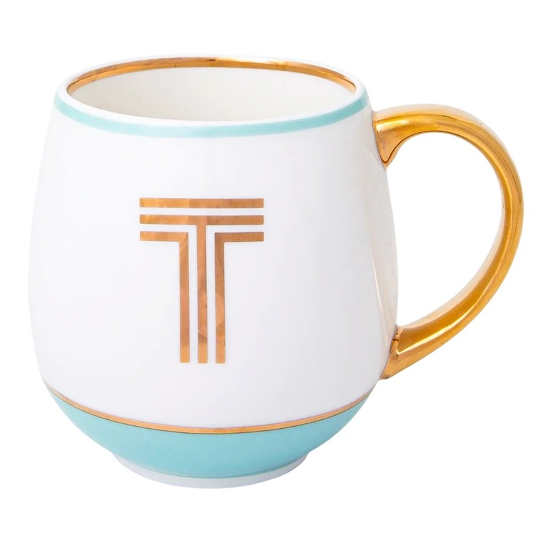 Блюдце Library золотая буква «T» (мятного цвета) |