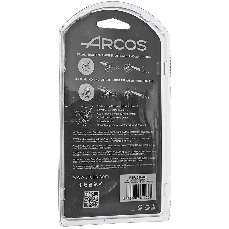 Изготовлена из долговечного пластика и металла.Обеспечивает безопасную заточку и сохраняет ножи в идеальном состоянии.