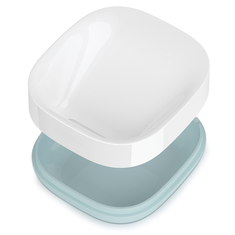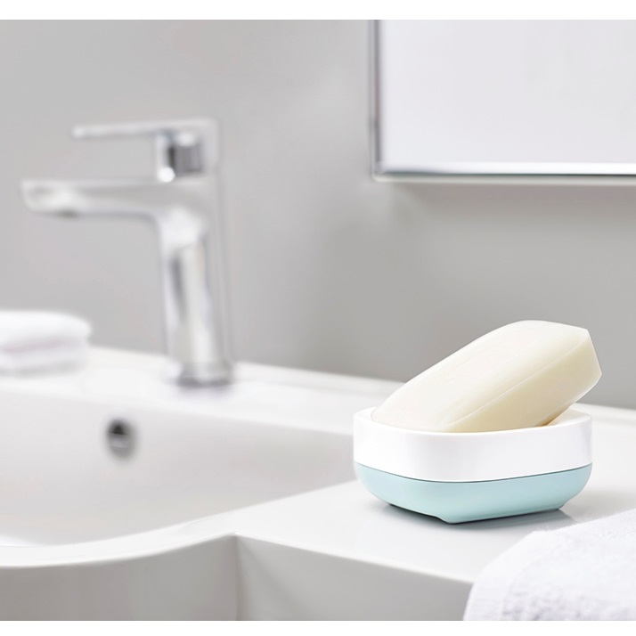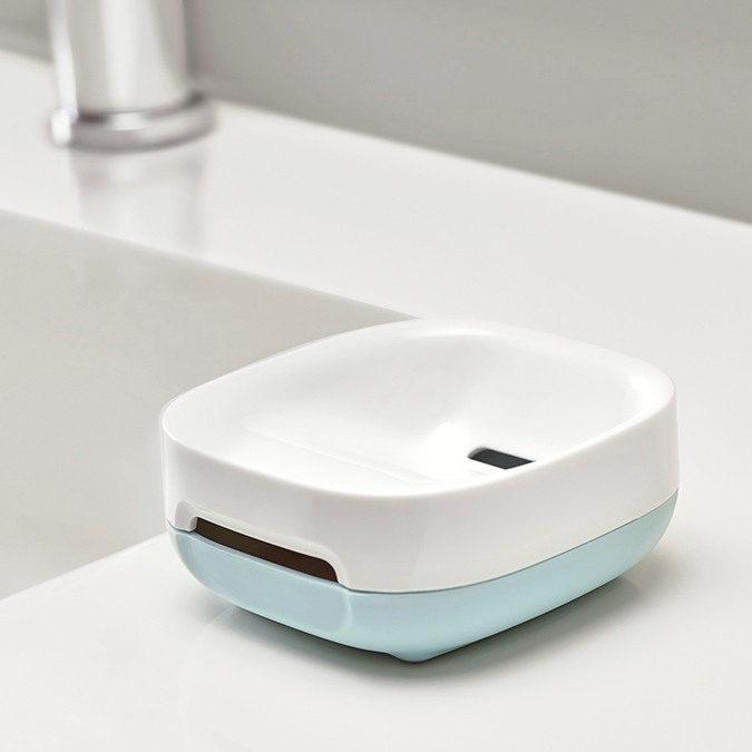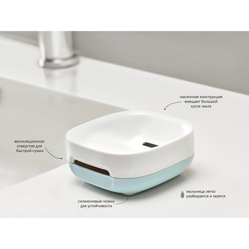 Мыло размещается в мыльнице не горизонтально, а под углом, благодаря чему излишки воды стекают в специальное отверстие и его поверхность быстро высыхает. Мыло будет дольше служить и при этом оставаться в хорошем состоянии. Вентиляционные отверстия обеспечивают поток воздуха, благодаря чему поверхность мыльницы остается сухой. Также конструкция легко разбирается, поэтому поддерживать ее в чистоте не составит труда. На дне мыльницы есть специальные силиконовые ножки. Этот материал не скользит по гладким поверхностям, что придает мыльнице дополнительную устойчивость.