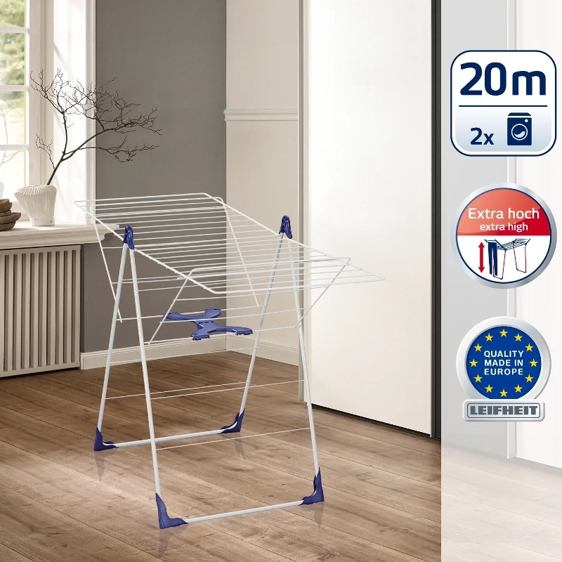 Сушильная стойка Classic 200 Flex от Leifheit подходит как для внутреннего, так и для наружного применения – не важно, для квартиры, балкона или сада. Это связано с тем, что его сушильные стержни имеют пластиковую оболочку и, следовательно, устойчивы к атмосферным воздействиям.