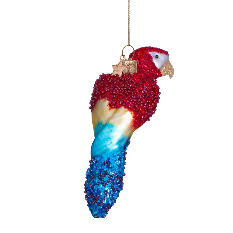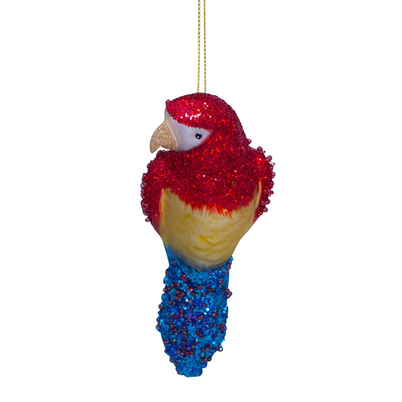 Разноцветный стеклянный попугай станет ярким элементом на елке и отличным подарком для коллег, друзей или родственников.