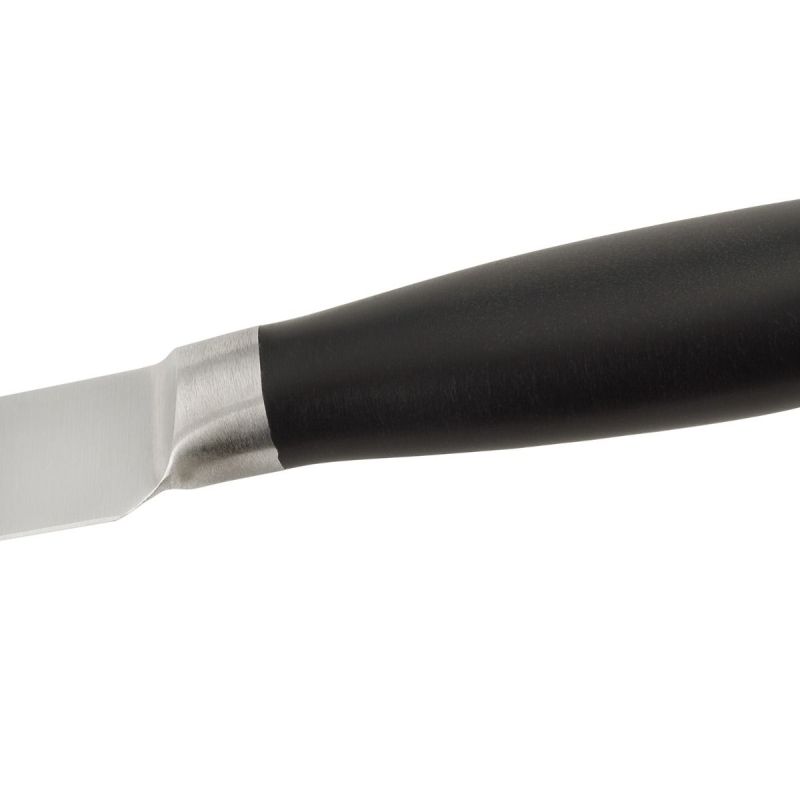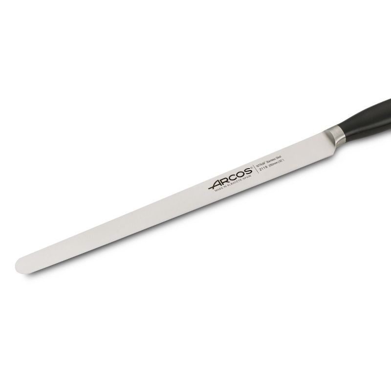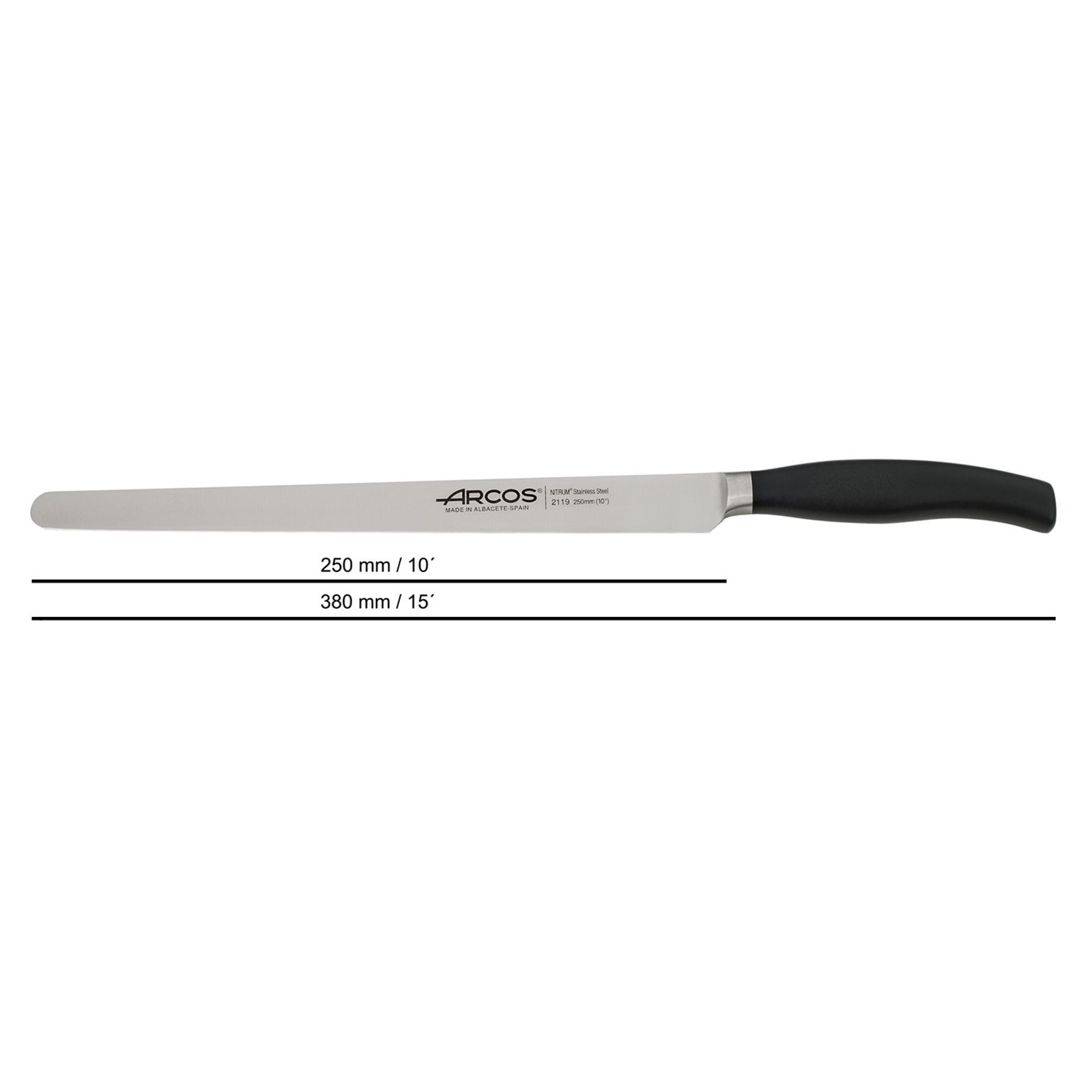 Лезвие ножа для окорока изготовили из эксклюзивной нержавеющей стали NITRUM, которая имеет сверхвысокую режущую способность, повышенную твердость и коррозиестойкость.