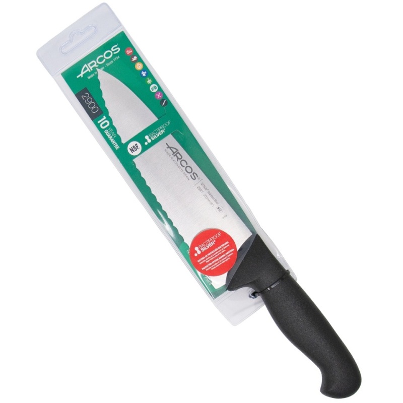 Лезвие поварского ножа изготовлено из эксклюзивной нержавеющей стали NITRUM, которая имеет сверхвысокую режущую способность, повышенную твердость и коррозиестойкость. В результате лезвие поварского ножа долго не тупится, не ржавеет, поэтому изделие имеет долгий срок службы. Рукоятка профессиональных ножей "2900" идеальна для интенсивного использования благодаря эргономичной форме с утолщением посредине. Комфортный захват рукоятки не перегружает кисть руки в течение длительной работы.