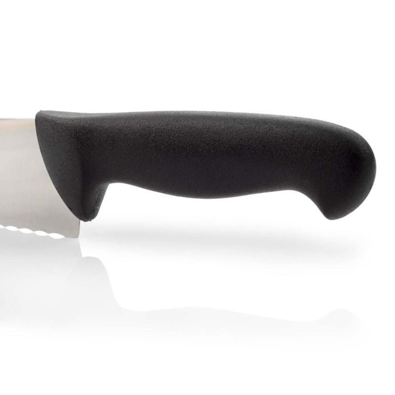 Рукоятку изготовили из антискользящего полипропилена, он устойчив к кислотам, хлору, моющим средствам и высоким температурам. Выступ, размещенный на конце рукоятки ножа серии «2900», предотвращает скольжение руки повара и влияет на безопасность использования ножа. Рукоятка – гигиенична, т.к. прошла антибактериальную обработку, которая сдерживает распространение бактерий, грибков и плесени.