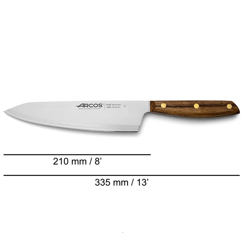 - Нержавеющая сталь Arcos NITRUM®, пропитанная азотом, обеспечивает быструю и мощную резку, а также длительный срок службы.