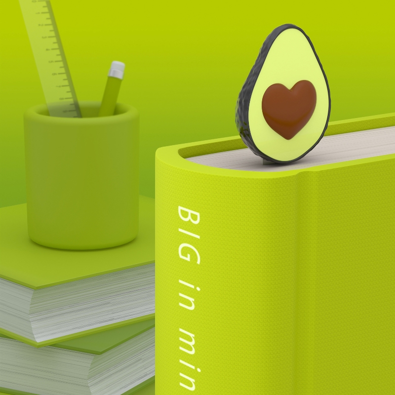 3D закладка Авокадо" способна держаться на месте даже при расположении закрытой книги в вертикальном положении за счёт объёмной декоративной фигурки. Подойдет также для бумажных органайзеров и книг рецептов.